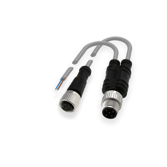 M12 4Pin公头 转 2x自由端、Y型预铸PVC非柔性电